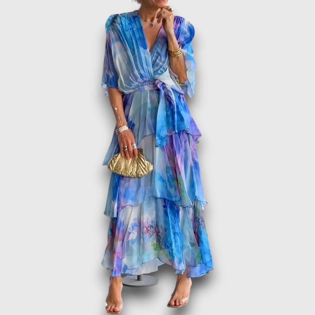 מציגים את שמלת אודט האלגנטית הזורמת, בחירה מהממת עבור אלו שאוהבים לעשות הצהרה אלגנטית. עם הדפס המים הרך שלה ועיצוב השכבות, שמלה זו משדרת sophistication ומושלמת לאירועים מיוחדים או לערבים בחוץ.