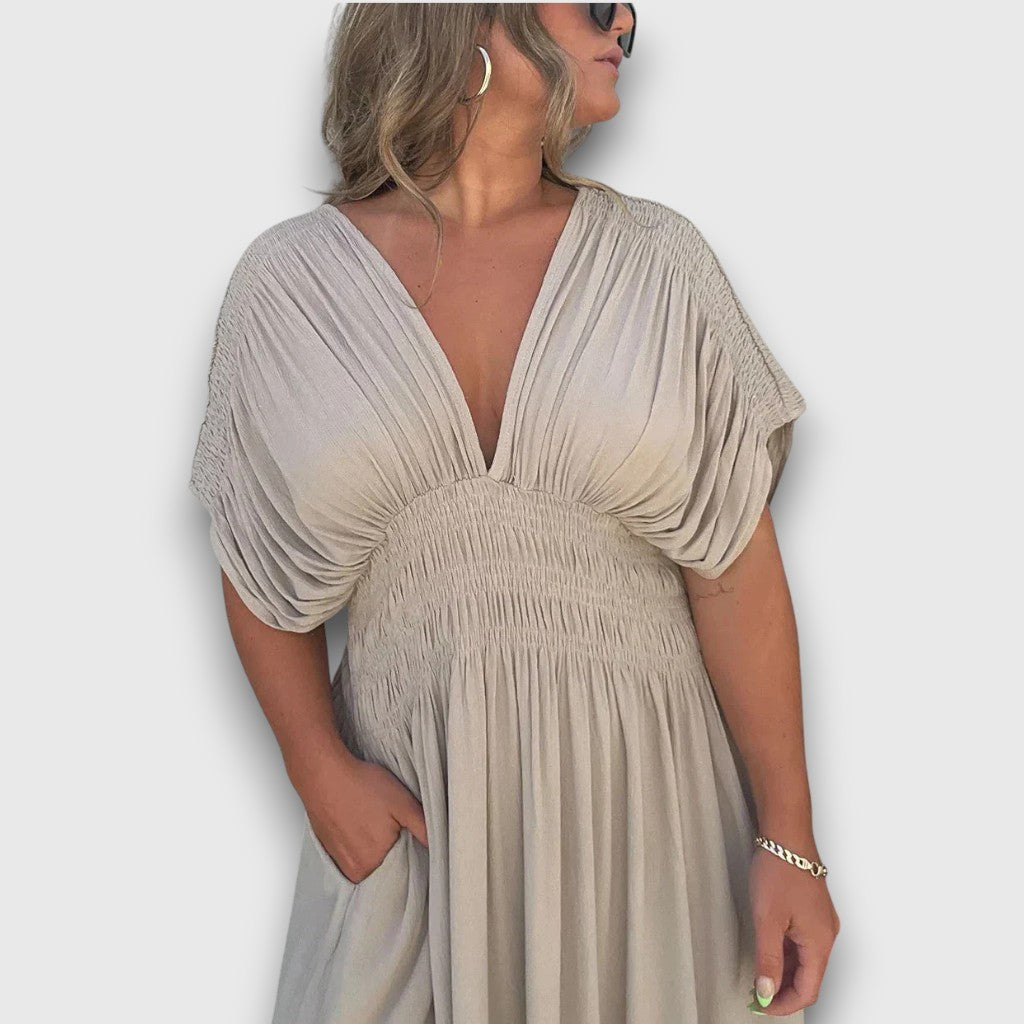 היכנסי לעידן של sophistication נצחית עם שמלת המקסי האלגנטית ברברה. עוצבה כדי להדגיש את דמותך ולספק נוחות לאורך כל היום, שמלה זו מושלמת ליציאות יומיומיות או לערבים מיוחדים.
