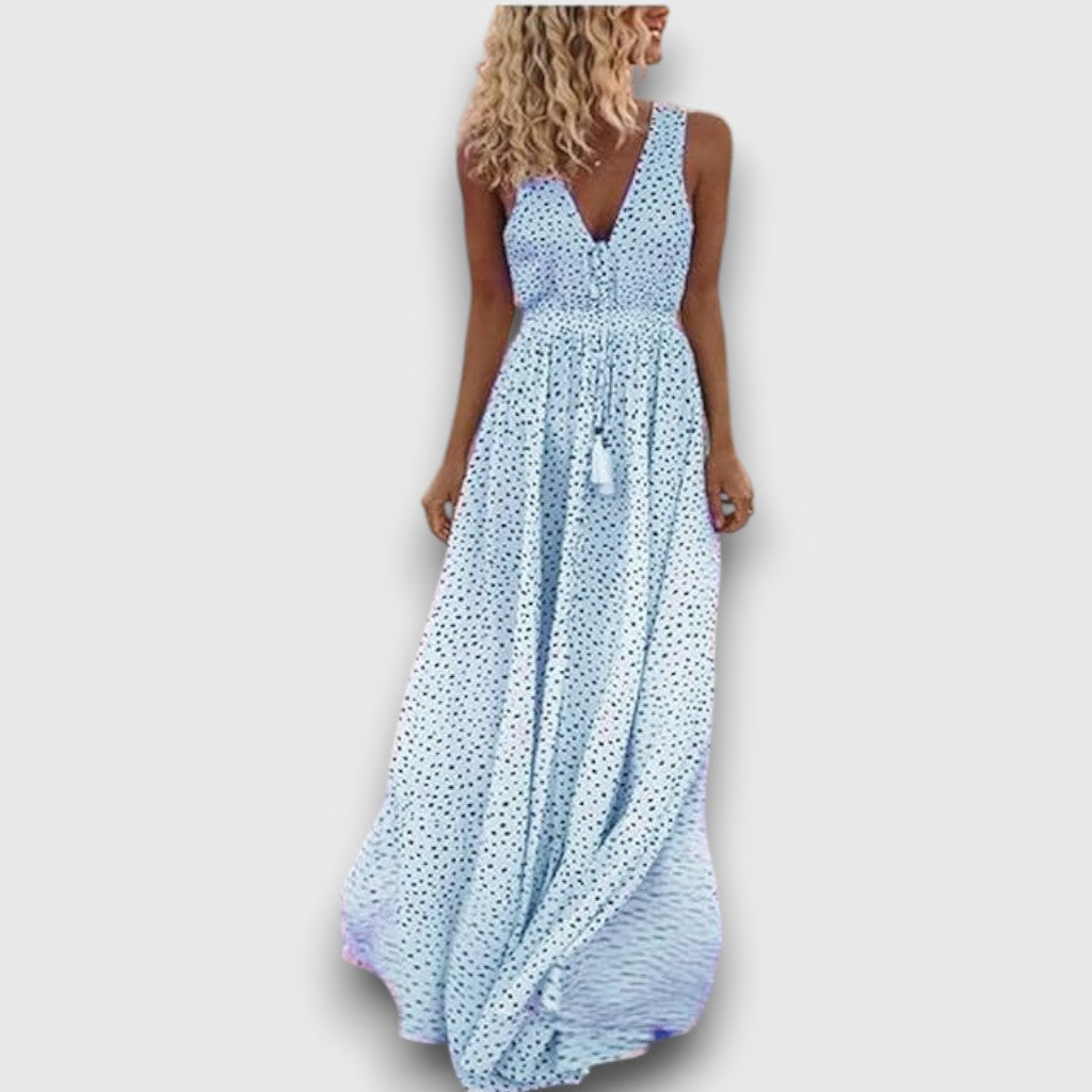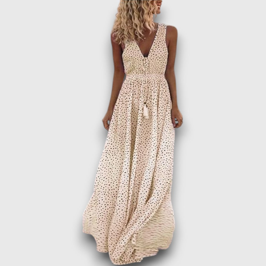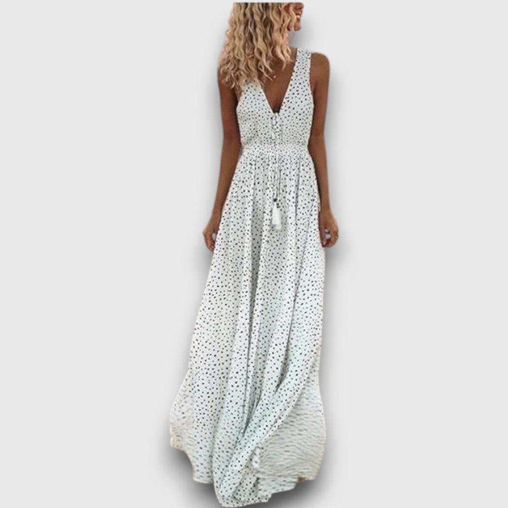 הפכי ראשים בכל מקום שתלכי עם שמלת המקסי הבוהמיינית של גייל, שנועדה להעלות את הסגנון שלך עם הזרימה הקלה והפרטים האלגנטיים שלה. מושלמת להליכות בשקיעה או יציאות מזדמנות, שמלה זו היא כרטיסך לנוחות ולחן.