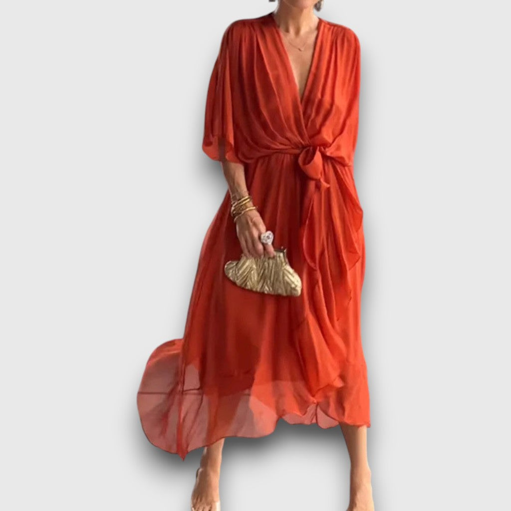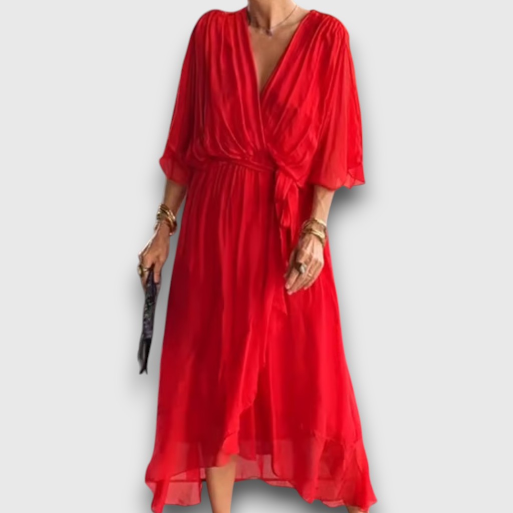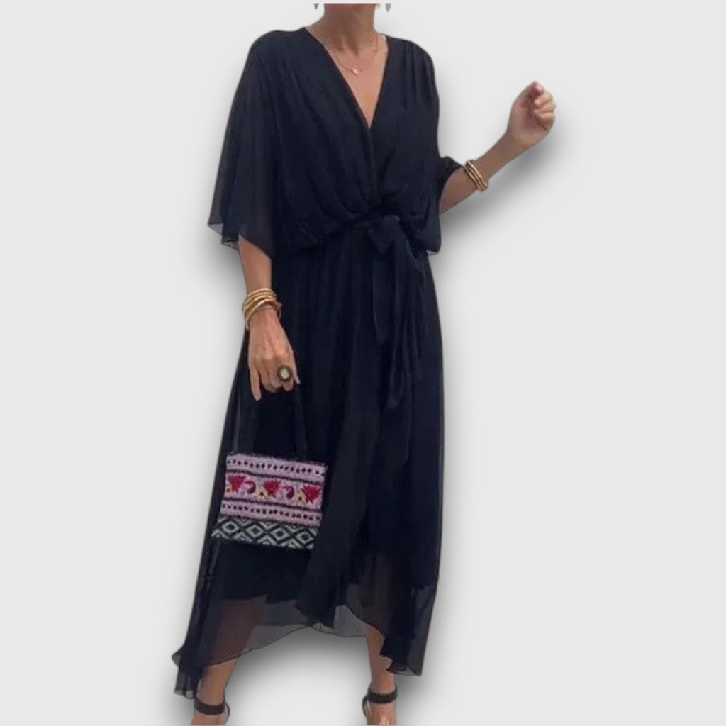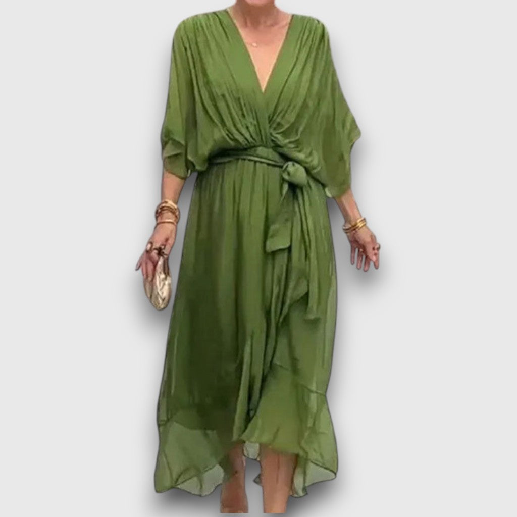 צאי בביטחון ובסטייל בשמלה שלנו עם מחשוף V סקסי, זמינה במידות פלוס! השמלה הזו מעוצבת ללטפח כל קימור, ומשלבת בקלות אלגנטיות וחן.
