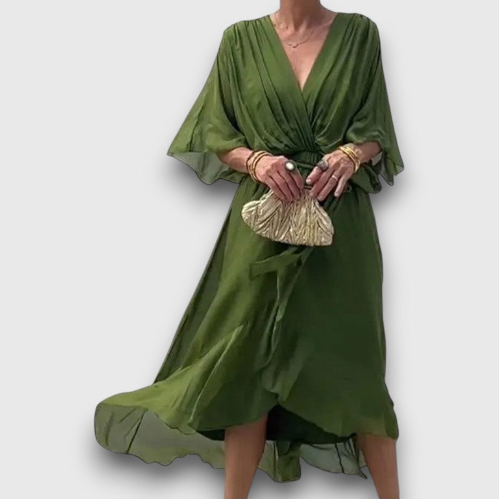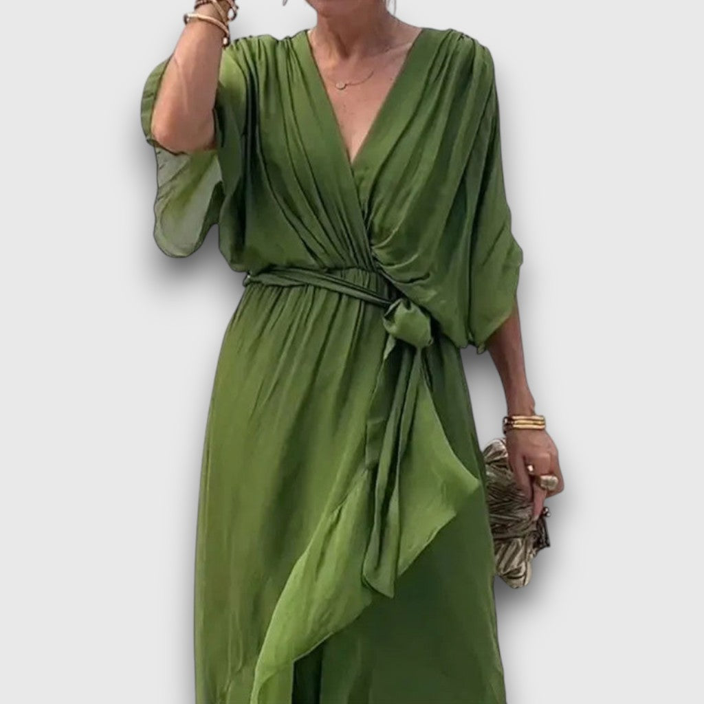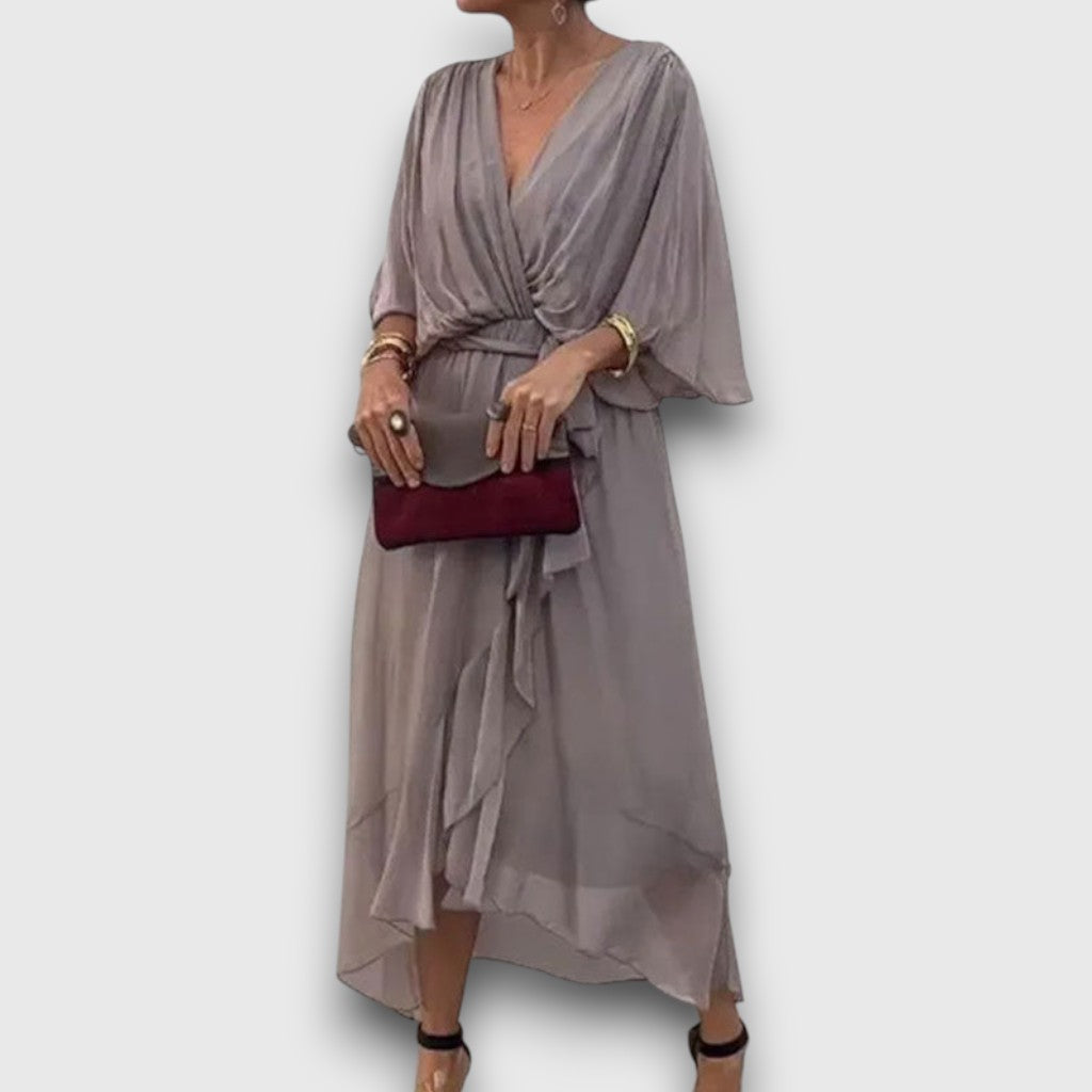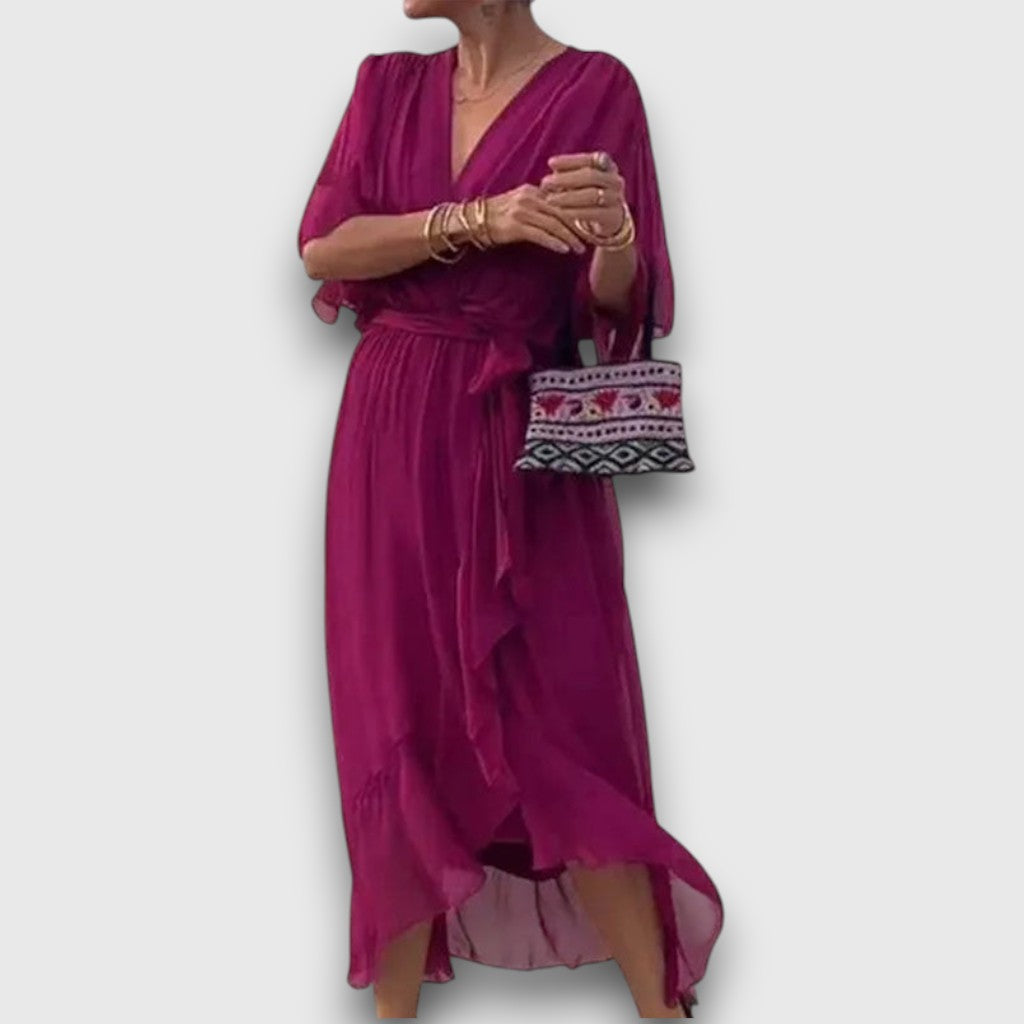 צאי בביטחון ובסטייל בשמלה שלנו עם מחשוף V סקסי, זמינה במידות פלוס! השמלה הזו מעוצבת ללטפח כל קימור, ומשלבת בקלות אלגנטיות וחן.