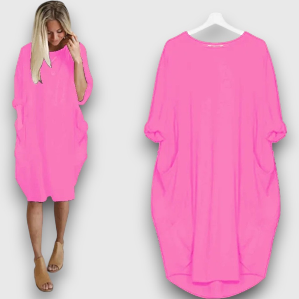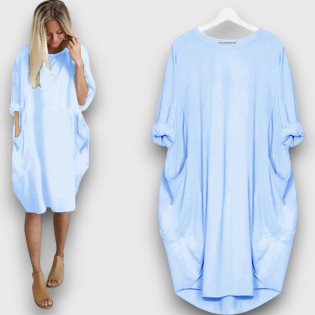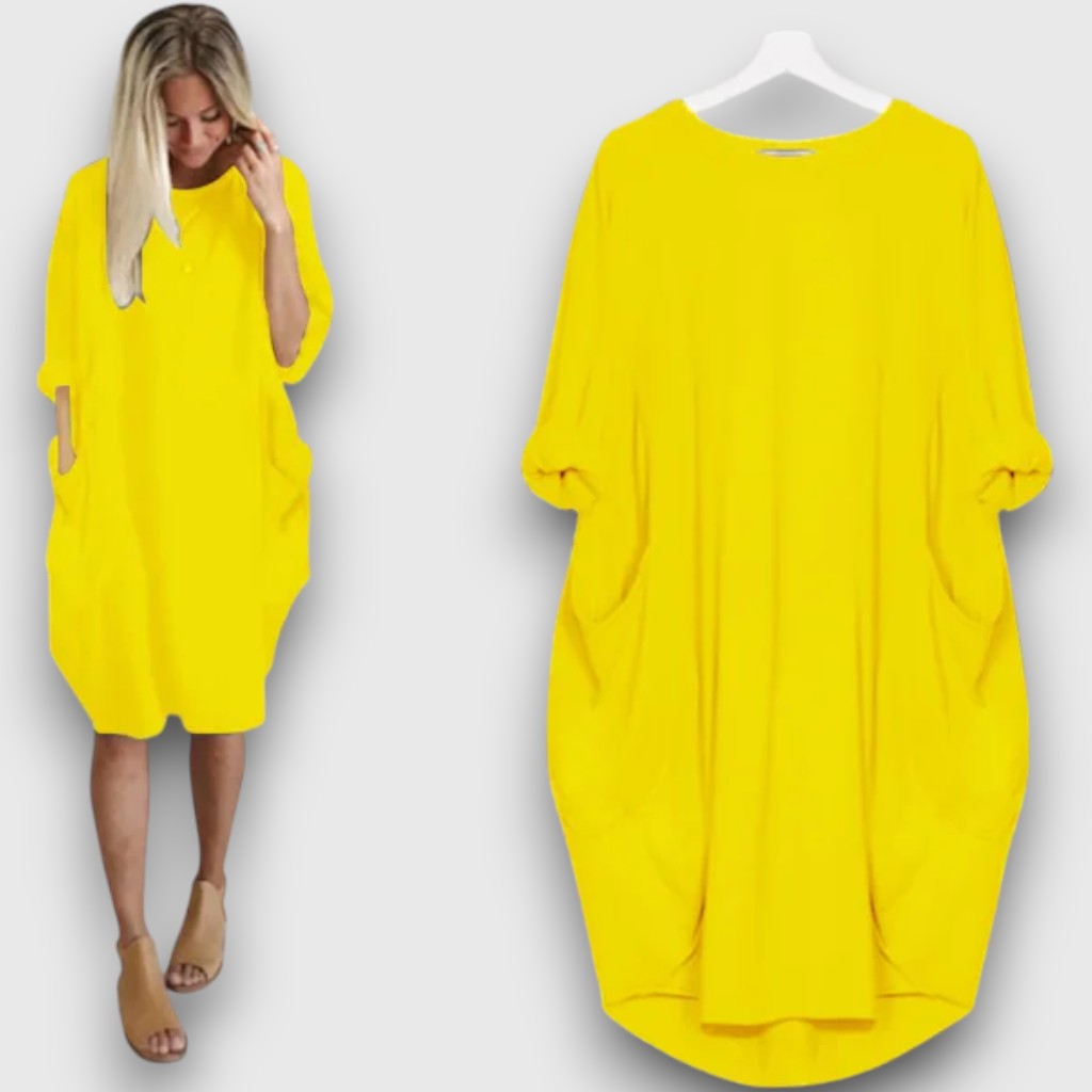 אמצו נוחות וסגנון עם שמלת מירנדה הנוחה המכסה את הבטן. מושלמת ליציאות קז'ואל, שמלה זו משלבת גזרה רפויה עם עיצוב שיקי, מה שהופך אותה לבחירה קלה ללבוש יומיומי.