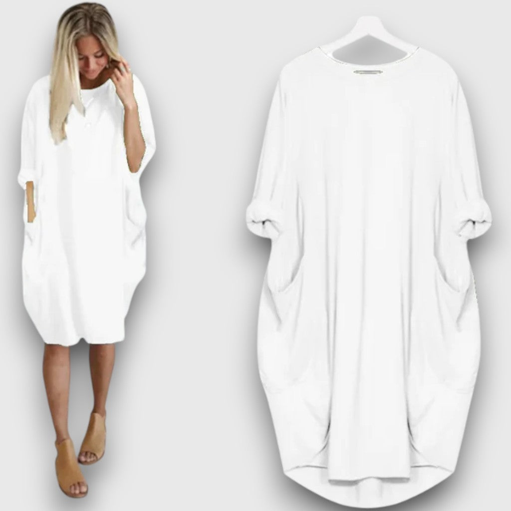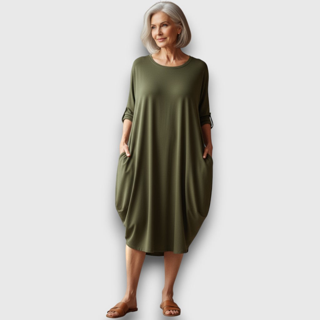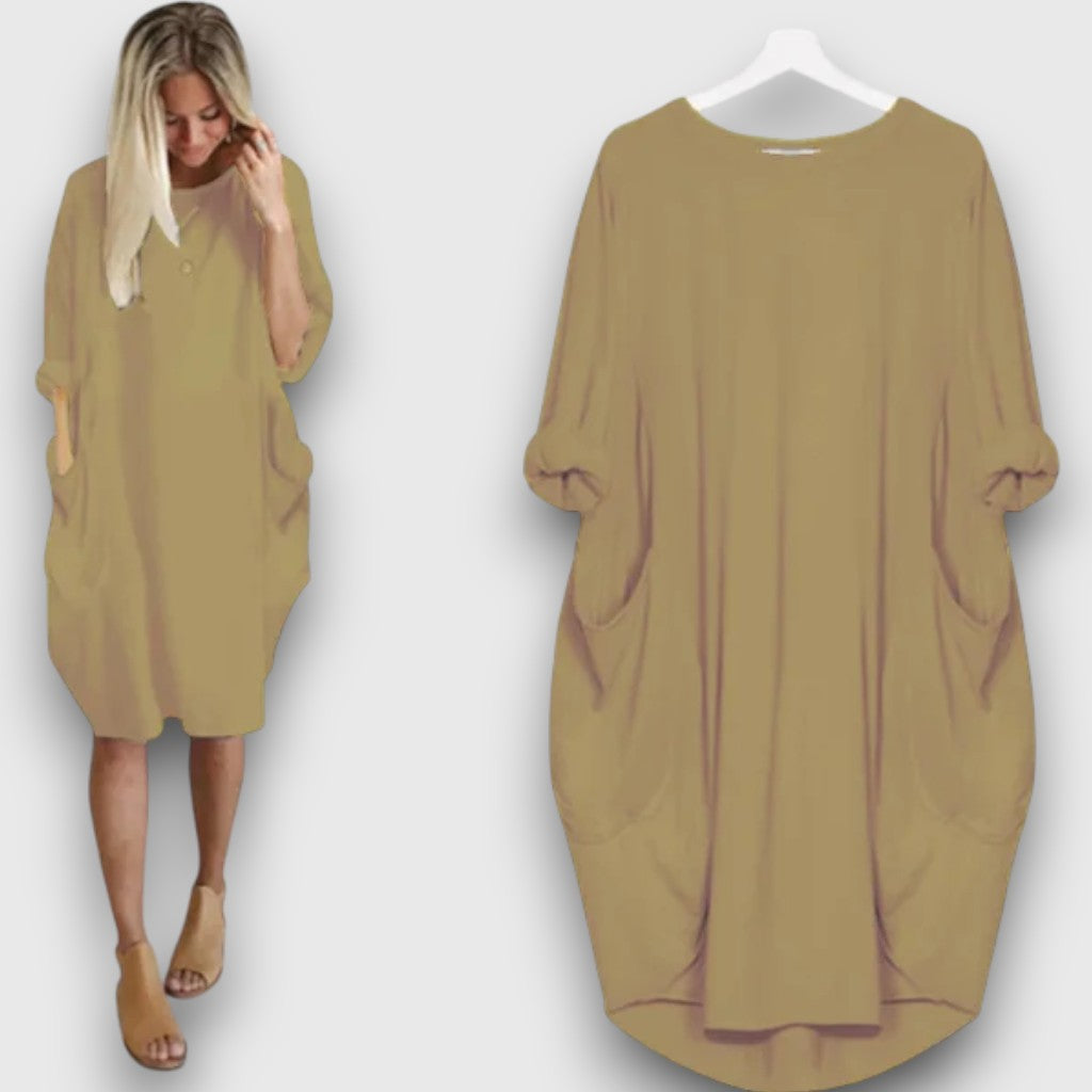 אמצו נוחות וסגנון עם שמלת מירנדה הנוחה המכסה את הבטן. מושלמת ליציאות קז'ואל, שמלה זו משלבת גזרה רפויה עם עיצוב שיקי, מה שהופך אותה לבחירה קלה ללבוש יומיומי.