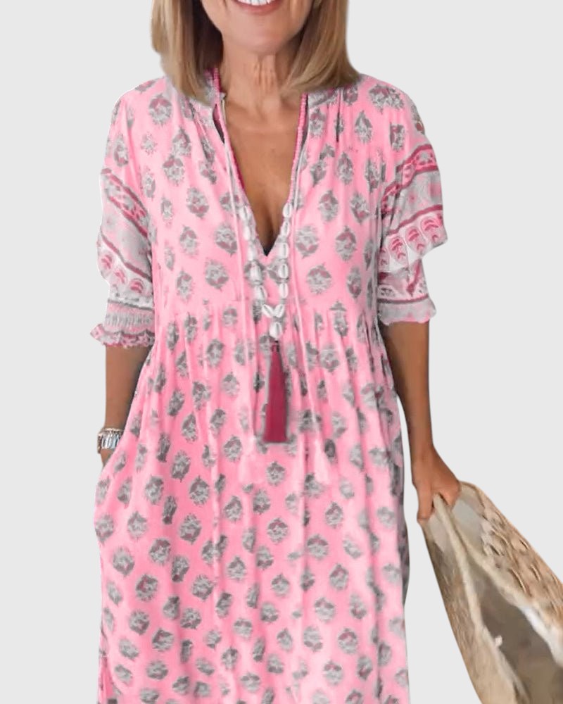 מנה - שמלת וי-נק פרחונית שיקית שמשלבת בין נוחות לעיצוב בולט, מושלמת לרענון הארון היומיומי שלך. עם הדפסים פרחוניים נועזים ומחשוף וי מחמיא, זו הבחירה האידיאלית לכל אירוע, בין אם את יוצאת לארוחת בוקר מאוחרת עם חברות או נהנית מיום בחוץ.